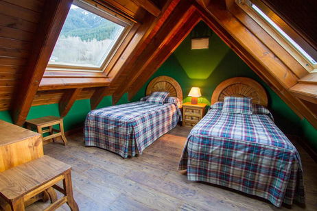 En la planta superior albergan dos camas individuales y amplia/s velux, que les regalarán sus espectaculares vistas a la montaña.