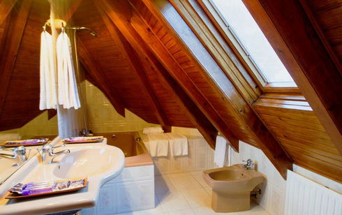Nuestras habitaciones Familiar Comunicada, abuhardilladas típicas de montaña, con capacidad para cuatro personas (opción 5/6ª persona (niños) en sofá-cama), están ideadas para aquellos que, sin perder intimidad, quieren estar juntos.